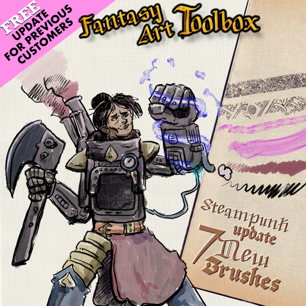 – 10 Magic Effect Brushes: Amaze the peasants with your knowledge of the arcane arts! This brushes work as special effects for your art. With them you can add fire, explosions, magic runes, energy... There isn't a correct or incorrect way to use this brushes, so try new things and experiment to use their full potencial!