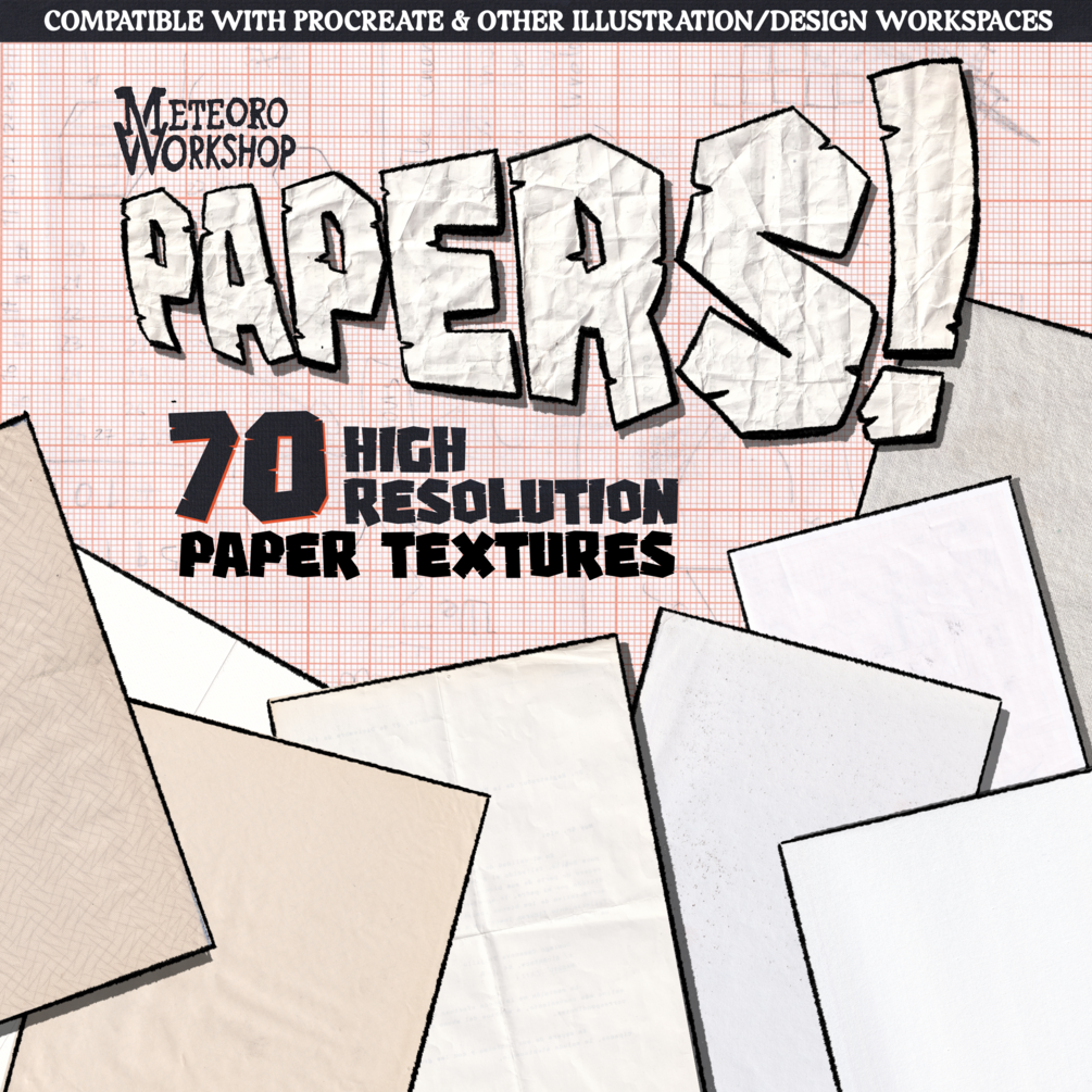 A collection of high resolution paper textures, compatible with procreate and other illustration/design workspaces.